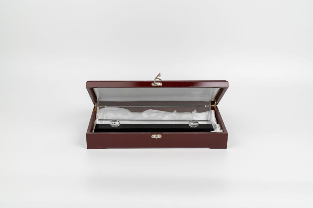 ٢٧٥درع كريستال أنيق مع علبة خشبية فاخرة – طباعة اسم أو شعار حسب الطلب